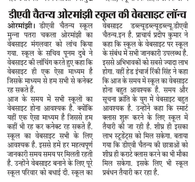 Welcome to DAV CHAITANYA, Ormanjhi, Ranchi