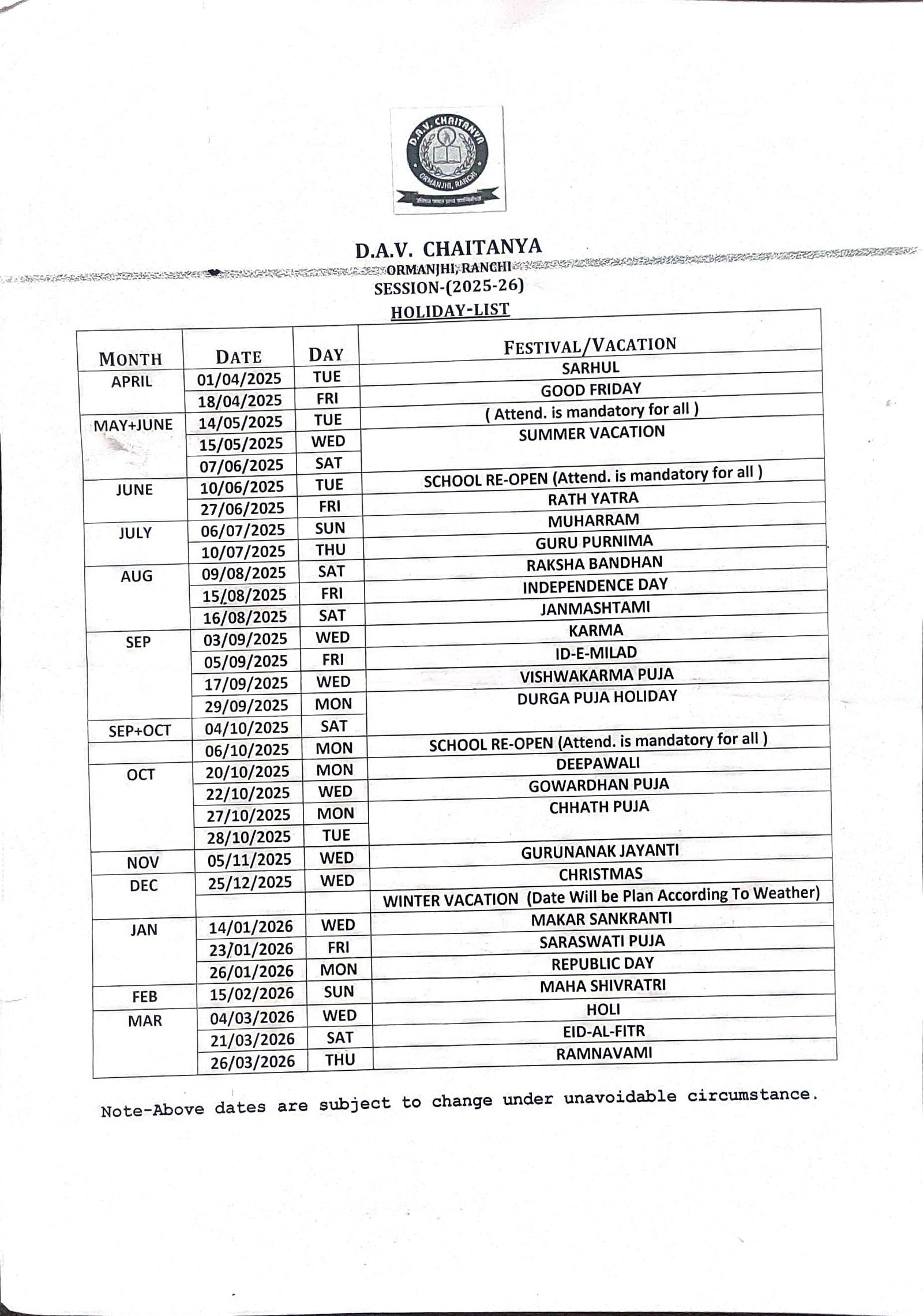 Copyright @ 2026 | DAV CHAITANYA, ORMANJHI, RANCHI | All rights reserved